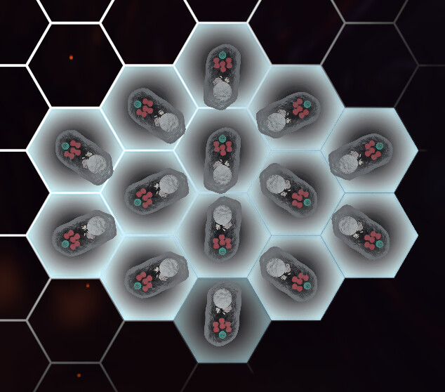 - How many cells do we expect players to place down at the most? The more the merrier, to a certain extent; too many cells will tank performance, and will be pretty unruly to manage. Progression to the next stage should work in a way that is more than just “get X number of cells in your body”, so I’m not saying we should place a hard cap on it; but we can introduce mechanics to make scaling up inefficiently harder, like a binding cost that increases non-linearly the most cells you have on you. Do we make it so that players generally work with around 10 cells at the “climax” of the Multicellular Stage? More? Less?